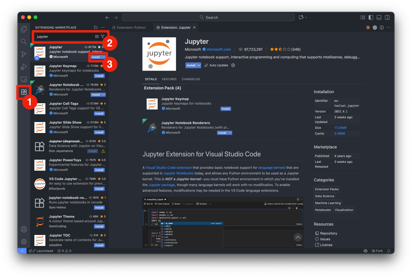 Set up VSCode: Install Visual Studio Code and add the Python and Jupyter extensions. VSCode provides an excellent development experience with features like code completion, debugging, and integrated notebook support.