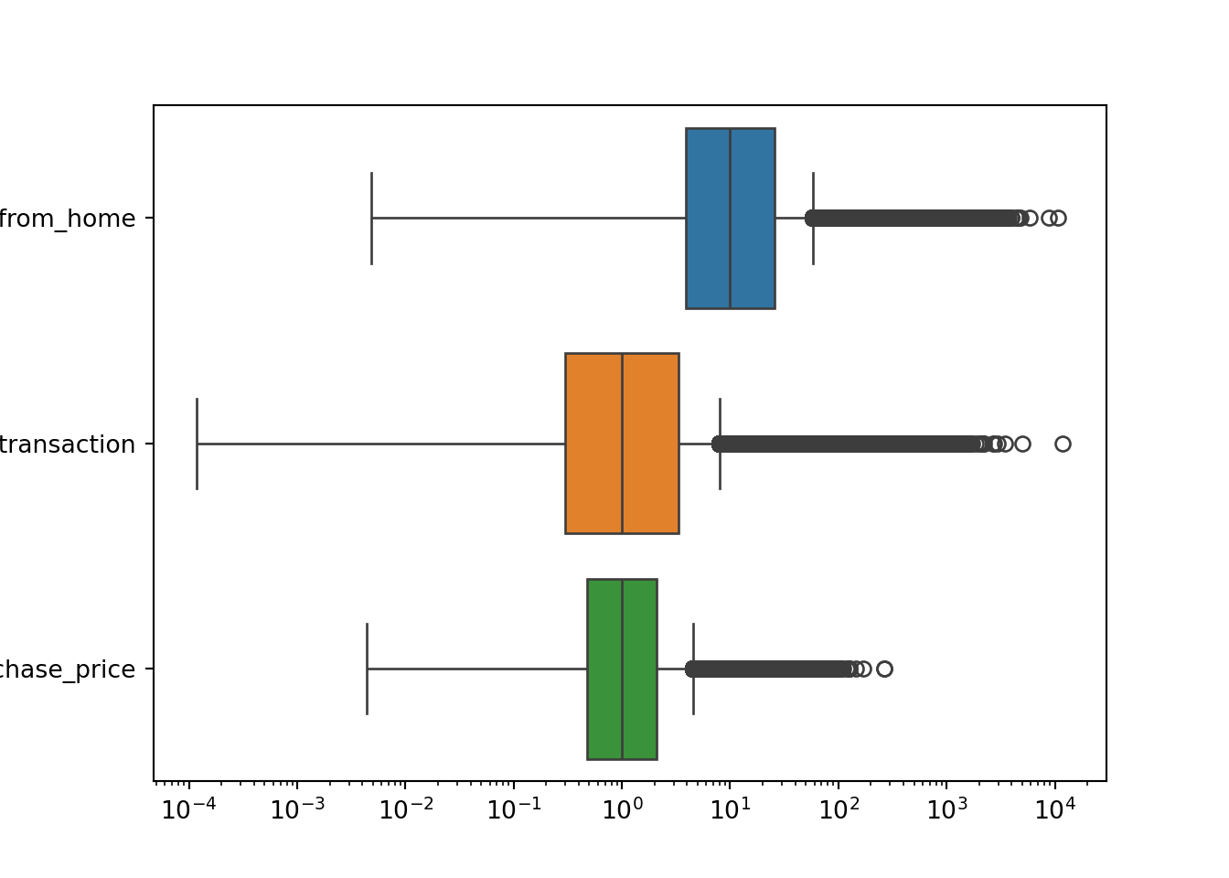 outliers['fraud'].value_counts()df['fraud'].value_counts()53092 of 87403 (more than half!) of our fraudulent transactions would be removed if we would have blindly removed the outliers according to the interquartile range. This is a significant number of observations, which would likely hurt the performance of our machine-learning model. Therefore, we should not remove these outliers. It would make the imbalance of our dataset even worse.