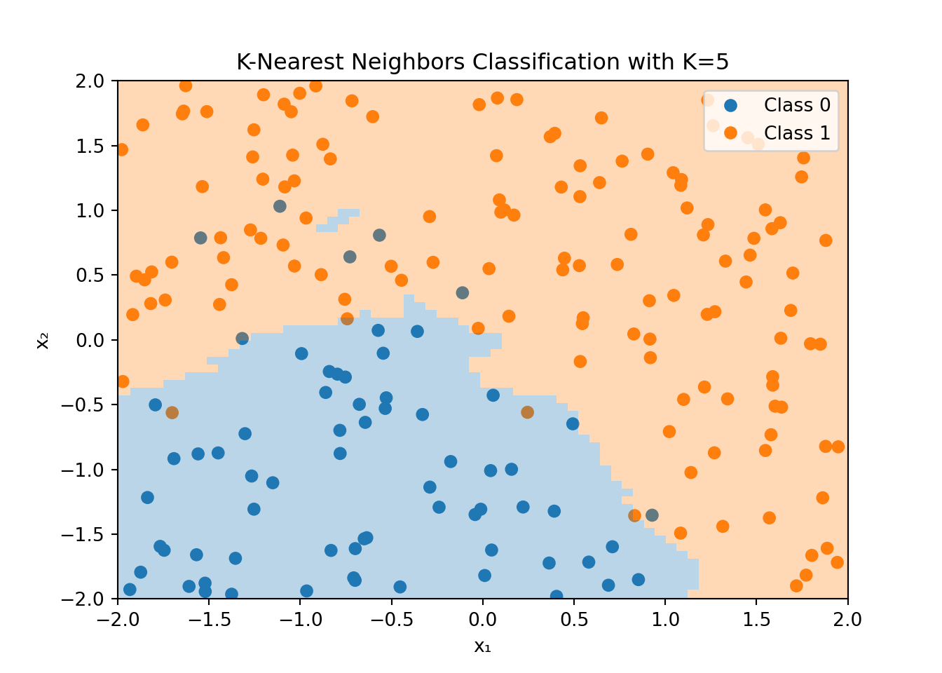 As an alternative to logistic regression, we can also use a K-Nearest Neighbors (KNN) classifier. The KNN classifier is a simple and intuitive machine learning model that classifies a new observation based on the classes of its k-nearest neighbors in the training set.