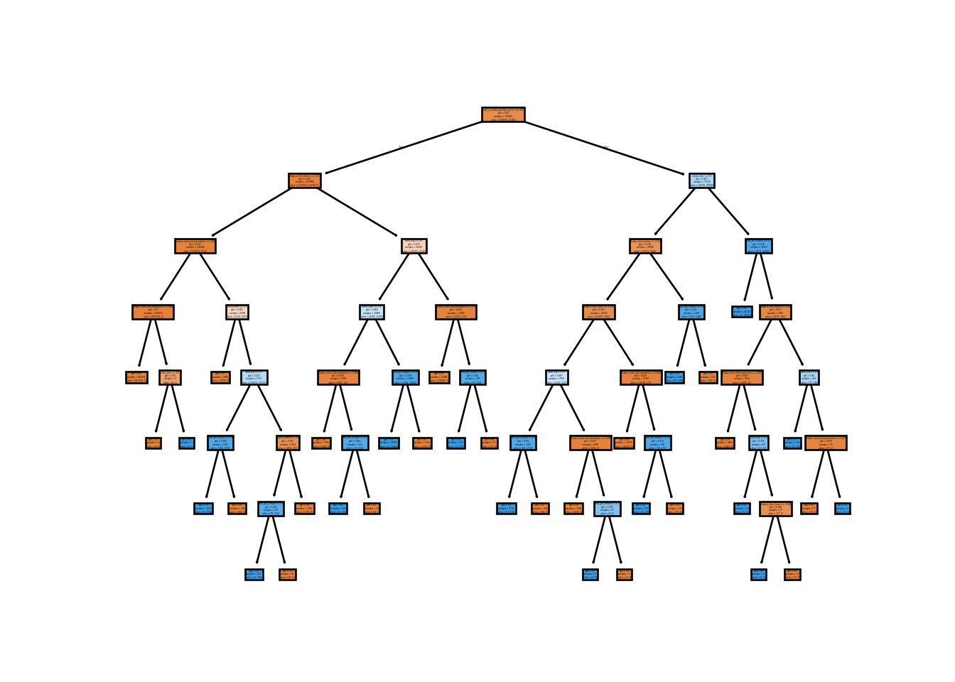 clf_dt = DecisionTreeClassifier(random_state=0).fit(X_train, y_train)We can visualize the tree using the plot_tree function from the sklearn.tree module