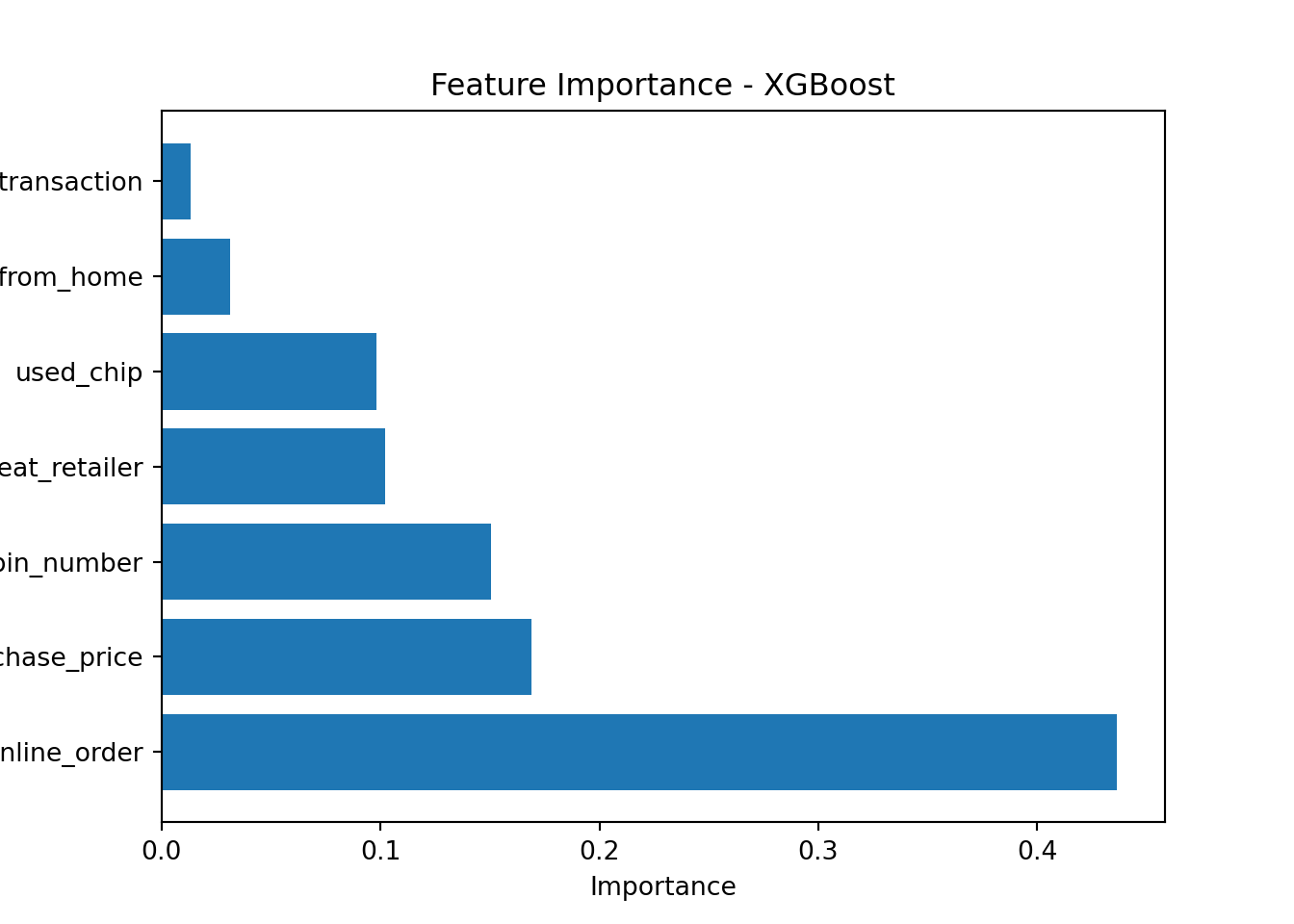 This shows that the ratio_to_median_purchase_price is the most important feature for determining whether a transaction is fraudulent or not. Whether a transaction is online, is important as well.